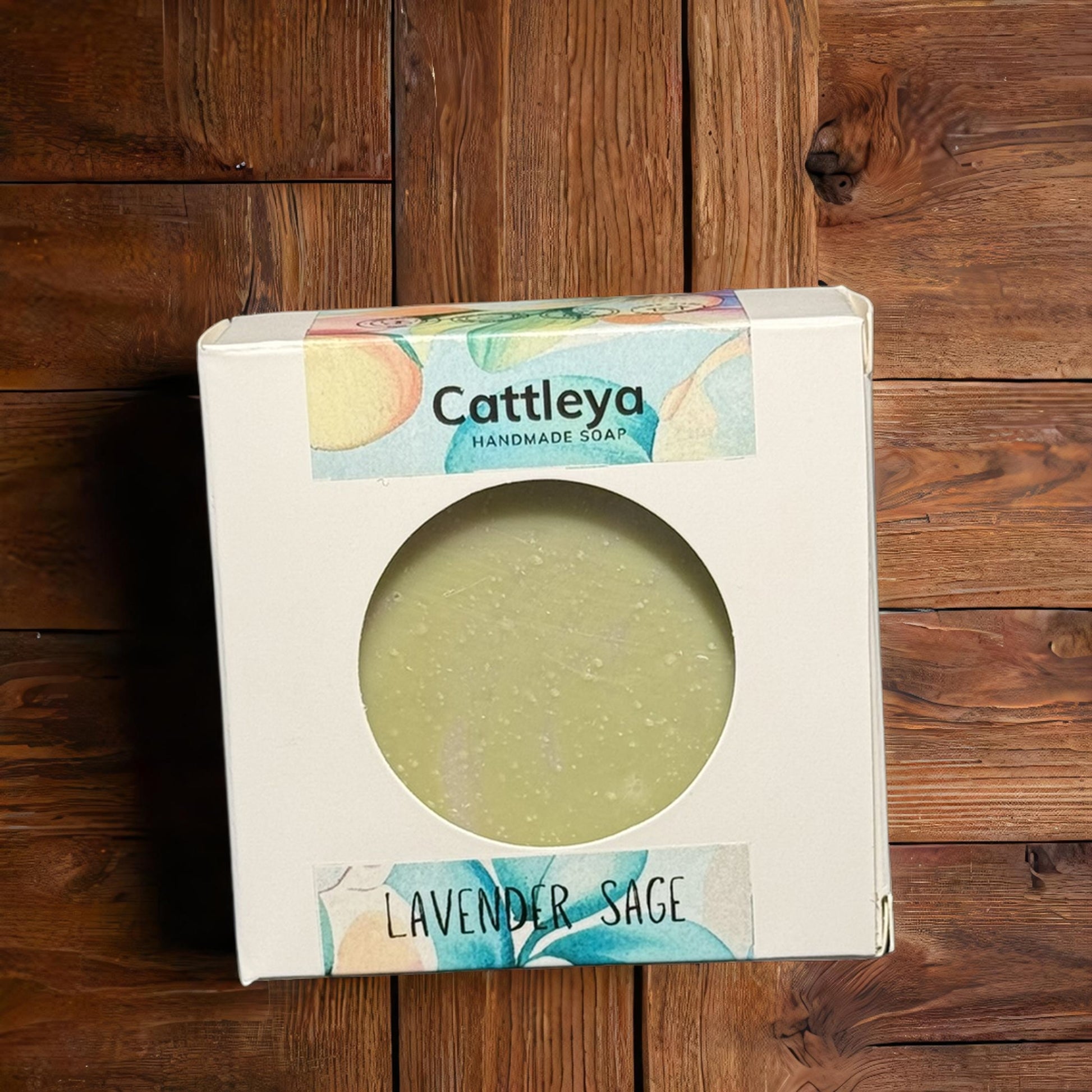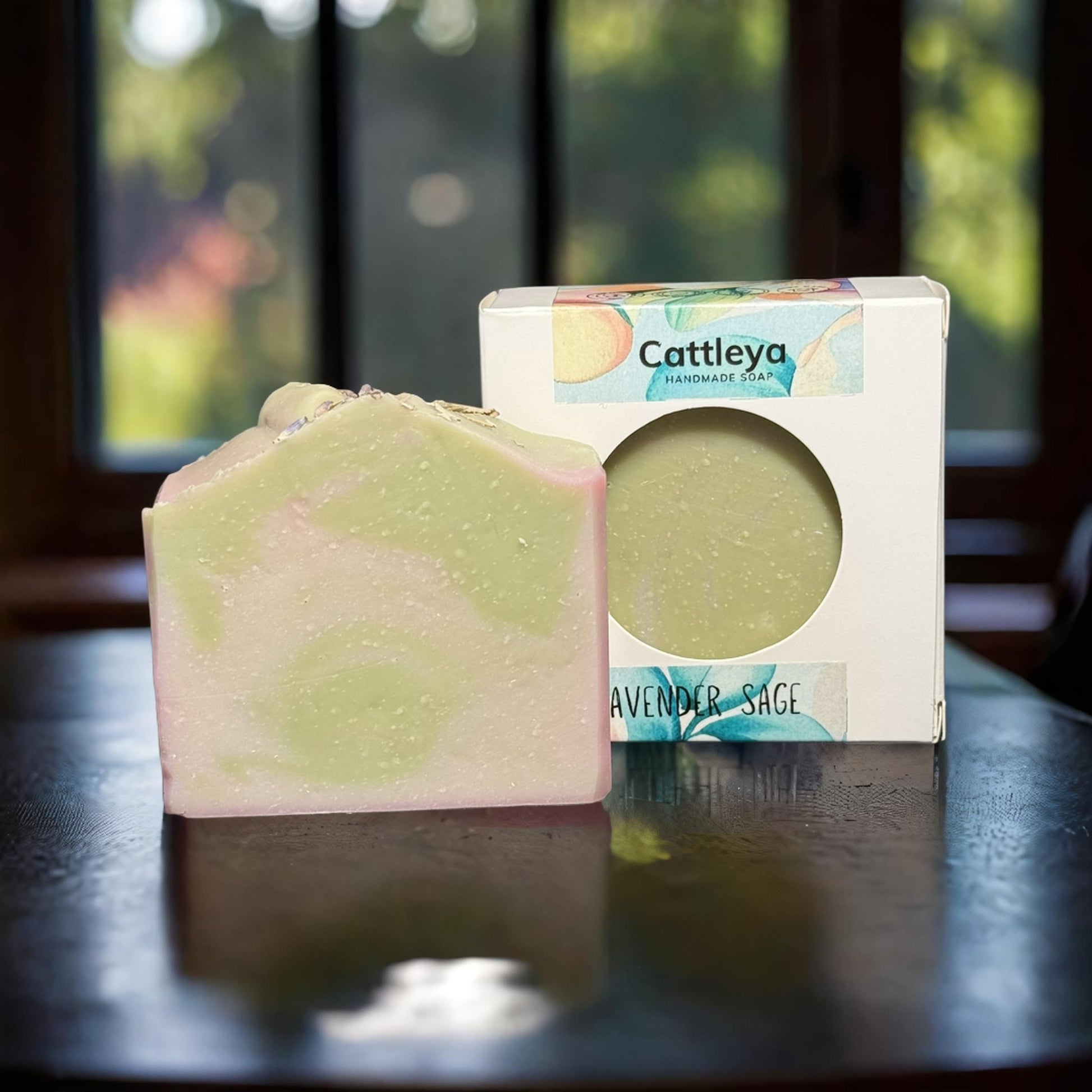 Coconut oil, Olive oil, palm oil, lye solution, aloe vera juice, Distilled water, kaolin clay, French green clay, Himalayan salt, lavender buds, sage leaves and Fragrance oil.