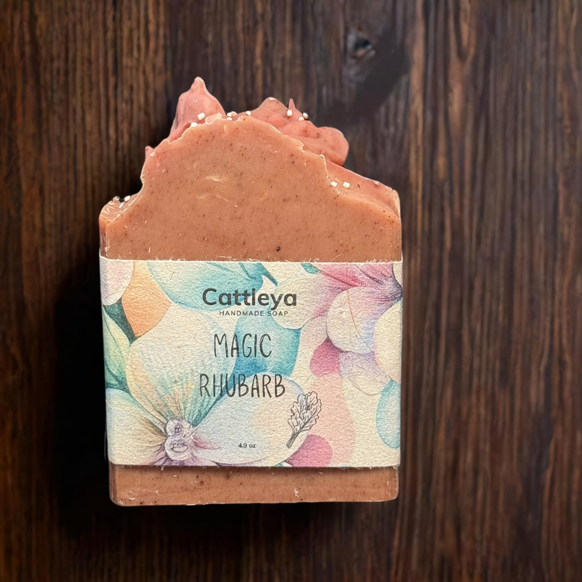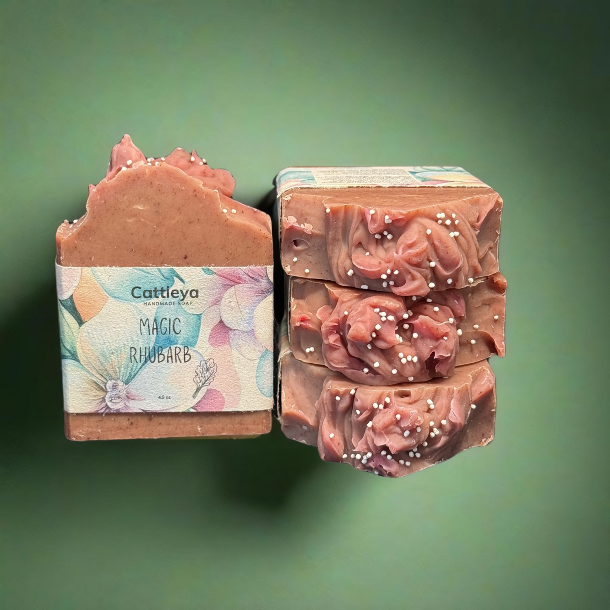 Indulge in the delicate floral scent of roses, adding a luxurious touch to your skincare ritual with this rhubarb soap.